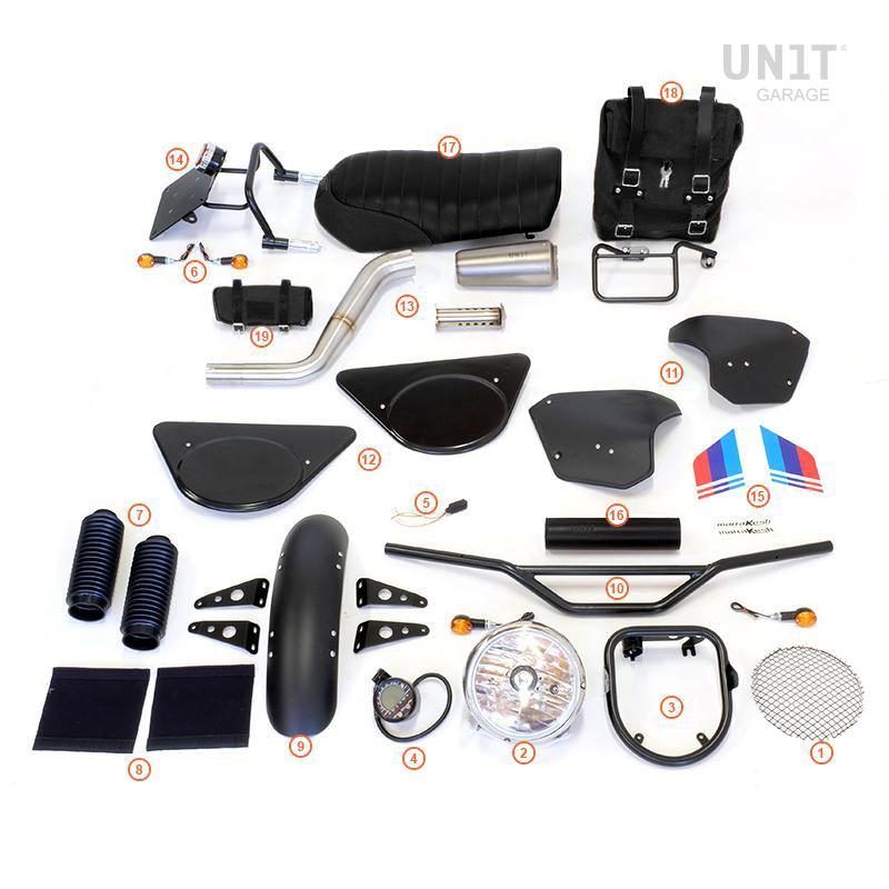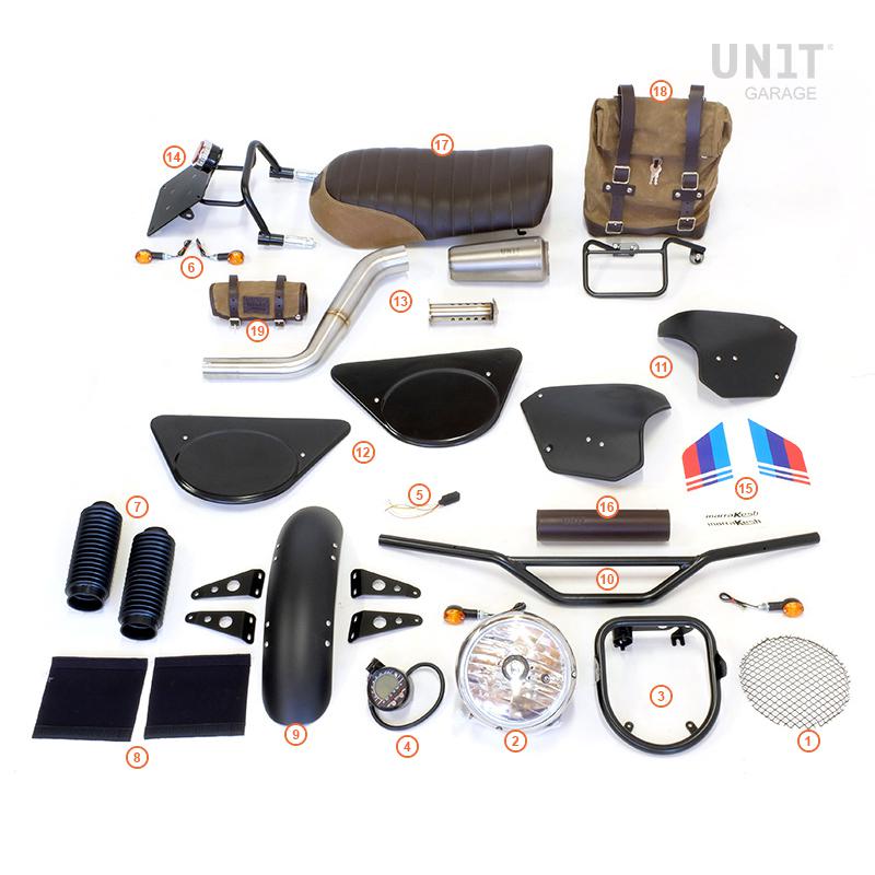 该框架可以缩短整个背部。仅需一个配件,您便可以快速修改整个后端,完美地修饰自行车的后部,重新放置车牌和所提供的认可前灯。它安装迅速,并配有特殊的膨胀器,无需使用焊接机即可牢固地固定在框架上,当然也无需重新喷涂。后挡泥板可以保留原始的挡泥板,也可以根据需要安装经典的铝制挡泥板。组装套件中包括:涂漆的金属框架,带灯的头灯,带箭头的铝制牌照架,支持基本编码1523(不包括箭头)。