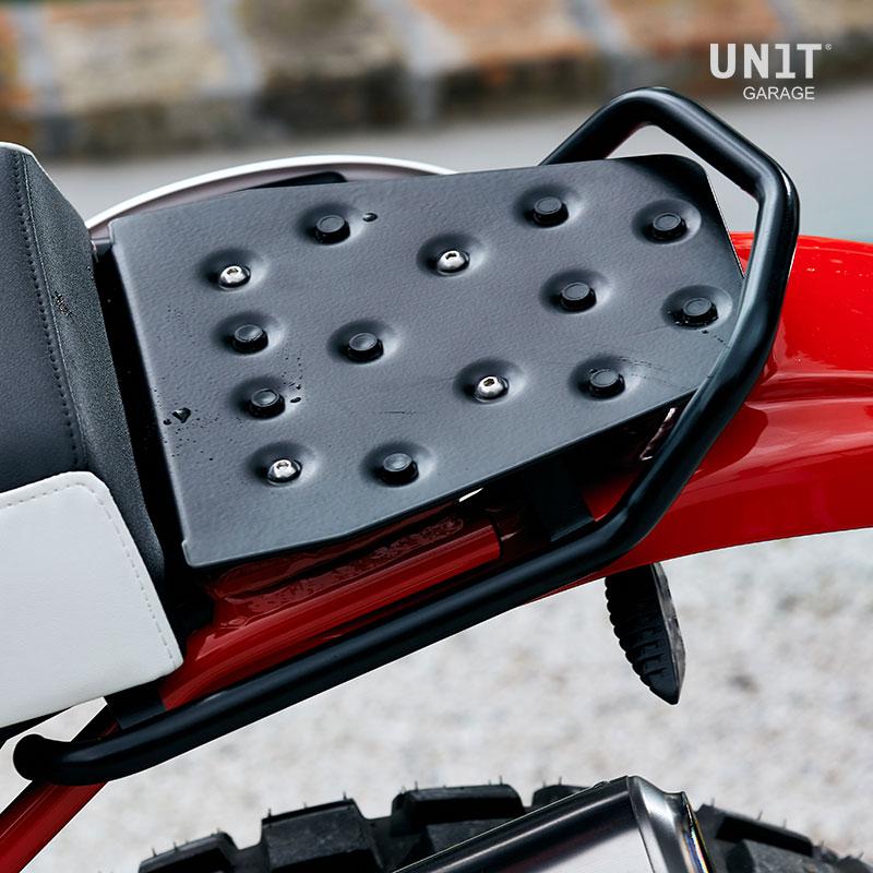 NineT Paris Dakar铝制行李架板,哑光黑色环氧粉末表面处理。该板是为nineT Paris Dakar套件制作的,固定在自行车的后车架上,以在卸下乘客座椅时扩大装载面。它可以与鳕鱼车顶架2014一起安装:随附有固定螺丝和防滑橡胶垫。完美容纳经典的cod 122509_01皮革袋或Duffle袋U013和U015。