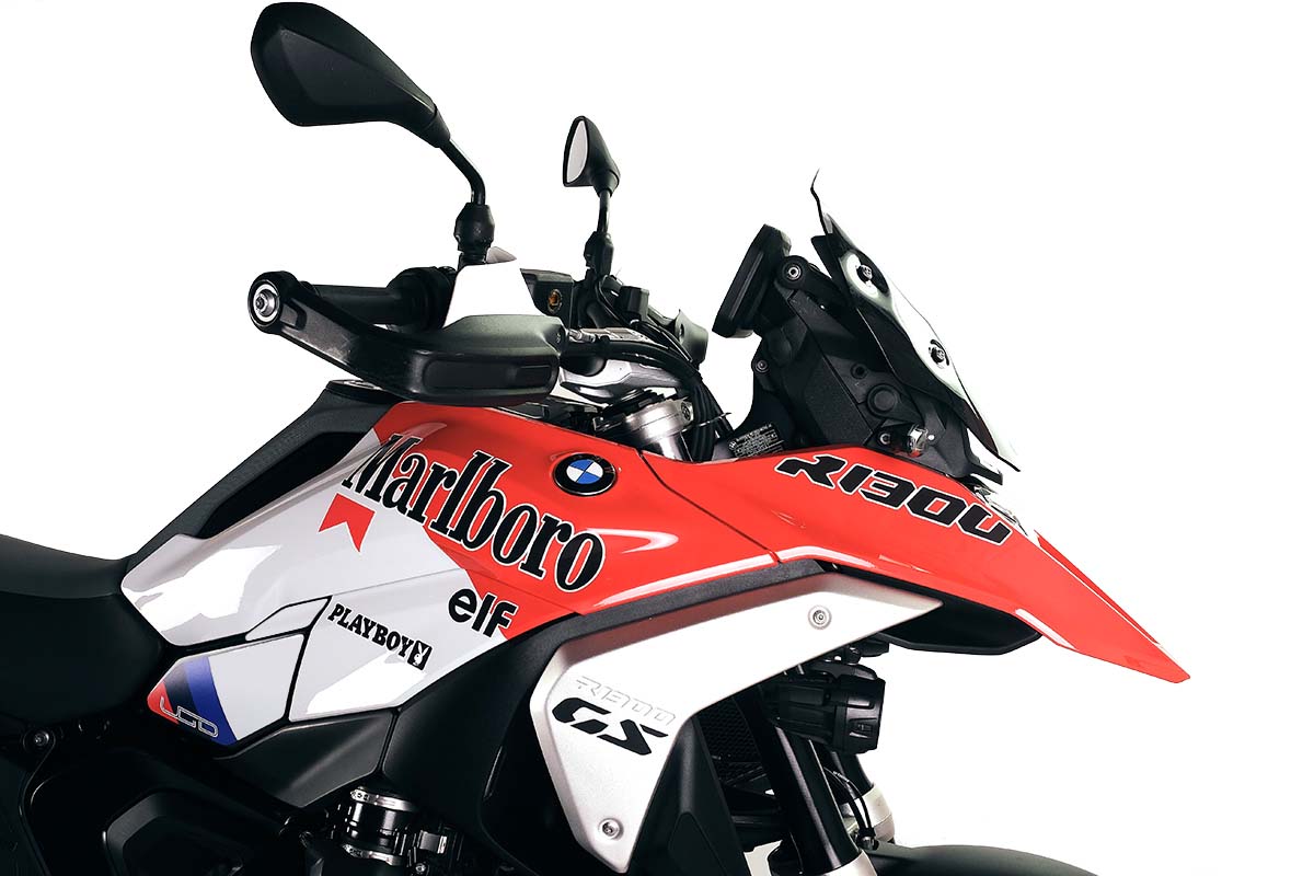 该套件与 2023 年起生产的所有 BMW R1300GS 车型兼容,替换了原摩托车的所有塑料部件。配有用高品质透明油漆保护的图形,它们为自行车提供了美妙的外观,而无需修改任何东西,一切都是完全可逆的。