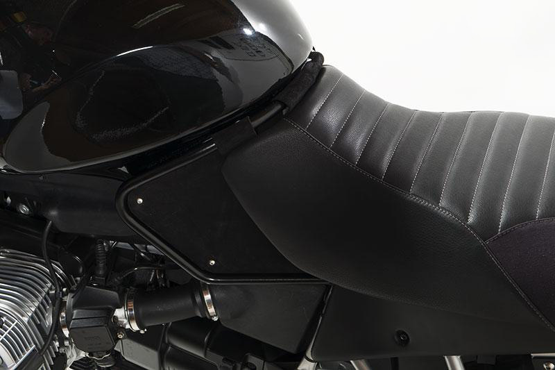 R850R 和 R1100R 的油箱在后部被切割,以容纳原车座。通过安装一个更经典的鞍座,在鞍座和水箱之间留有空白区域,我们解决了这个问题:水箱侧面的保护管由钢制成,带有厚厚的黑色环氧粉末饰面和二层皮革饰面。除了修复骑手膝盖附近的油箱区域外,它还通过与您的自行车线条完美融合,让您的 R 看起来更有肌肉感。随附安装所需的一切。