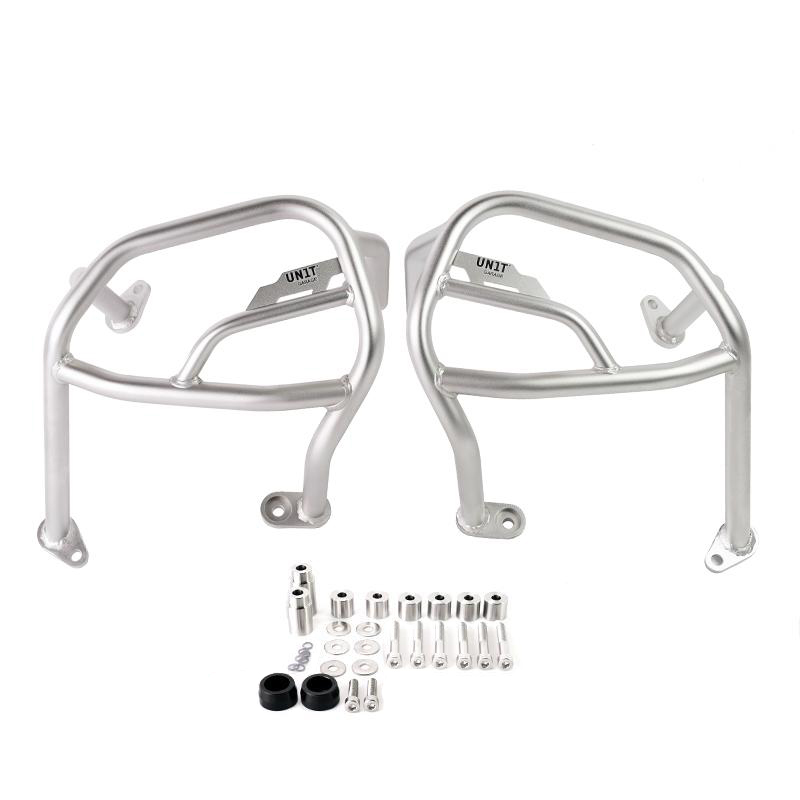 它们外形美观且结构紧凑,比市场上传统的气缸防护罩更有效,因为它们在摩托车车架上的三个点上枢转,以保护拳击手珍贵的气缸盖。它们与 R1300GS 框架完美集成,在跌落时具有很强的保护作用。由经过高强度粉末涂料处理的不锈钢制成。它们易于组装,配有钢衬套和塑料盖,可插入框架中。大多数维护工作无需拆卸动臂即可完成。