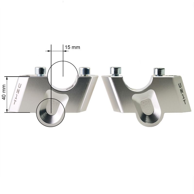 我们设计和 CNC 制造的特殊车把立管,采用银色表面的实心铝合金加工而成。