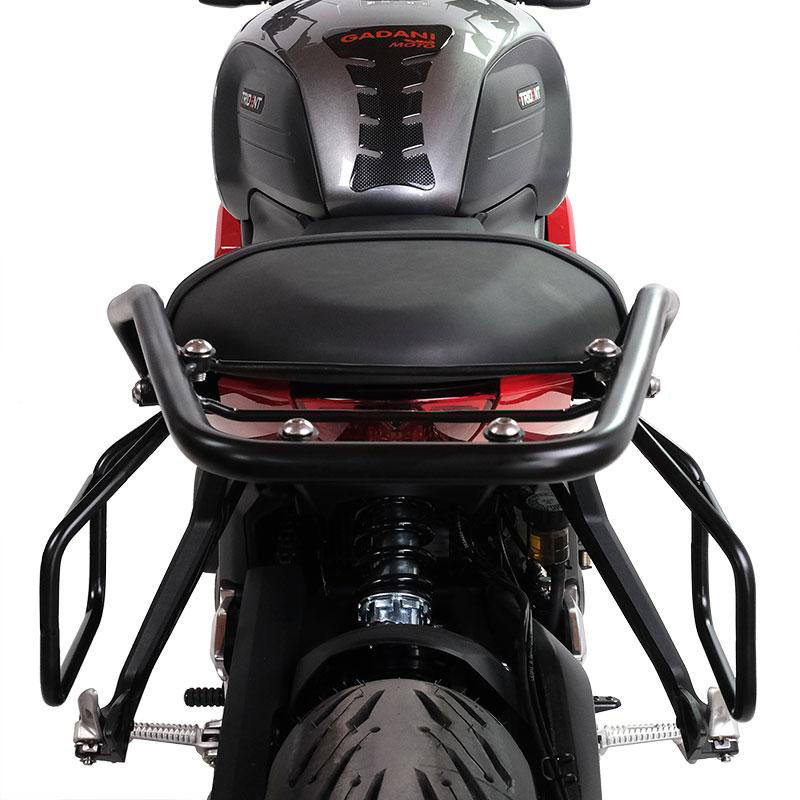 行李架由钢管制成,表面哑光黑色环氧粉末。它完成了后部部分并配备了乘客把手,可以使用随附的螺钉非常简单地将其固定到原始摩托车上。 坚固实用,支撑面上配有 4 个衬套,用于固定 AL5 板(可单独购买或已包含在 Atlas 顶箱代码:AL3 中)。