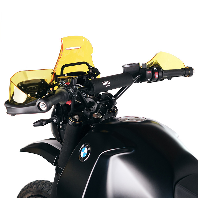 对于宝马 R12 G/S,我们想要一款“复古”风格的车把,带有横梁,直径恒定(22 毫米)。骑行姿势更轻松时,摩托车的操控感会更加强劲。车把采用钢制材质,表面采用哑光黑色环氧粉末喷涂,并配备了安装在原装立管和控制器上所需的所有配件。