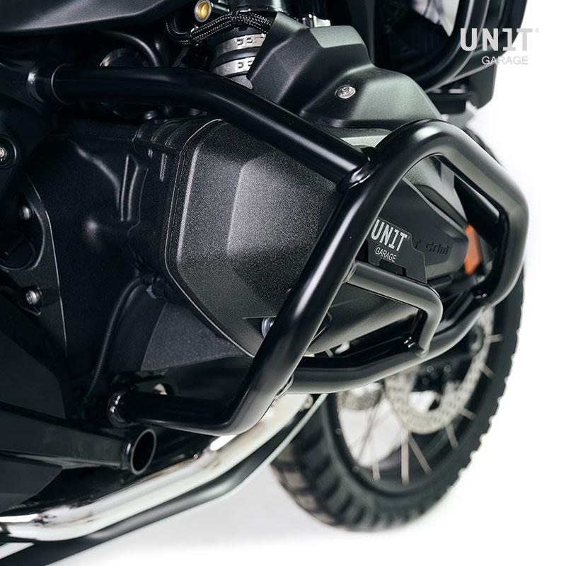 它们外形美观且结构紧凑,比市场上传统的气缸防护罩更有效,因为它们在摩托车车架上的三个点上枢转,以保护拳击手珍贵的气缸盖。它们与 R1300GS 框架完美集成,在跌落时具有很强的保护作用。由经过高强度粉末涂料处理的不锈钢制成。它们易于组装,配有钢衬套和塑料盖,可插入框架中。大多数维护工作无需拆卸动臂即可完成。