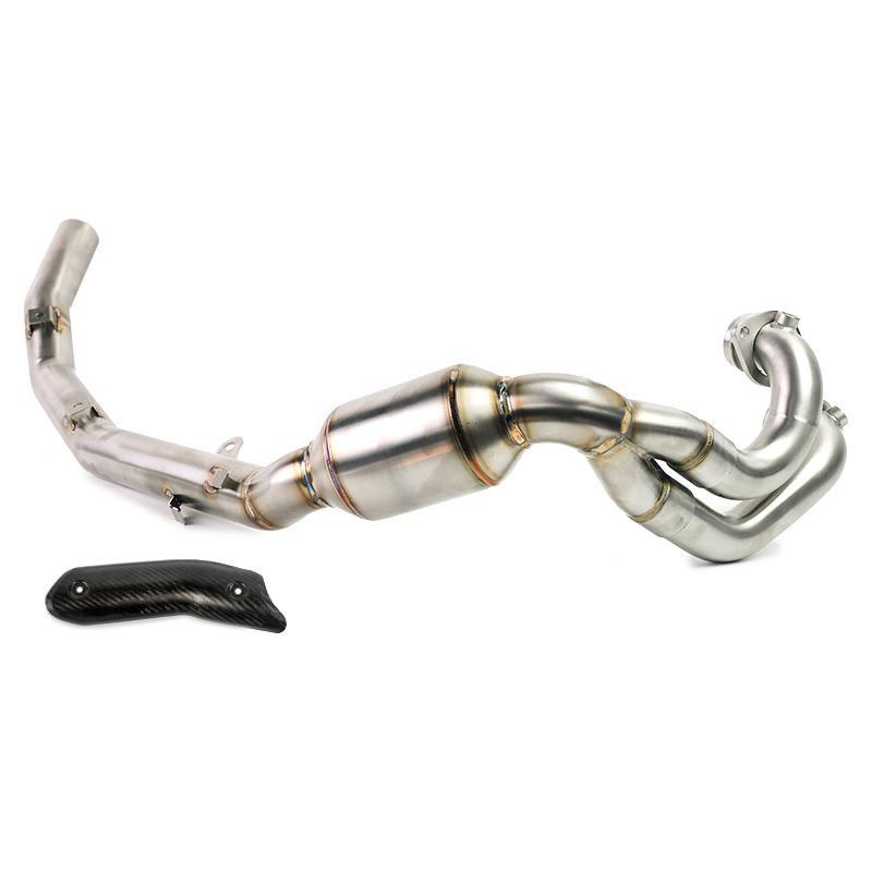 如果您想取消催化转化器、减轻重量并增加动力,为您的 Aprilia Touareg 660 赋予新的生命,这就是您所需要的!不带催化剂的不锈钢赛车歧管套件。配备补偿器,它使自行车在整个功率曲线上更加出色。配备组装所需的一切。包括碳防护罩。