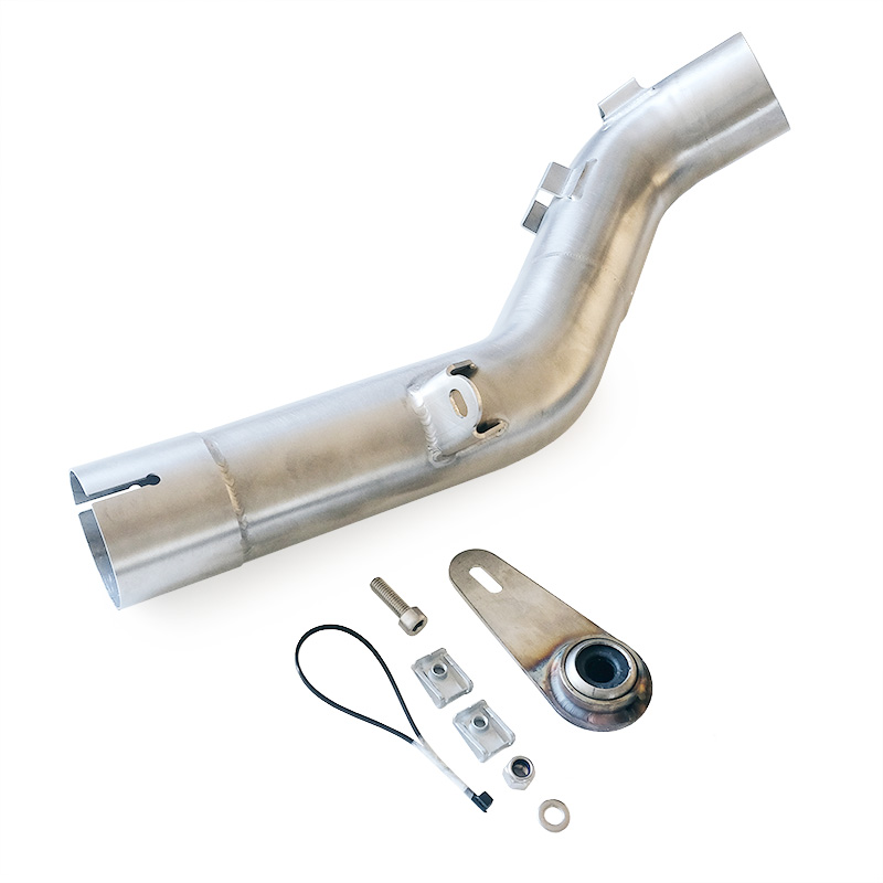 由不锈钢制成,具有高质量可见焊缝,适合赛车使用,重量仅为 500 克。功率增加了并且还与原装歧管和排气管兼容。