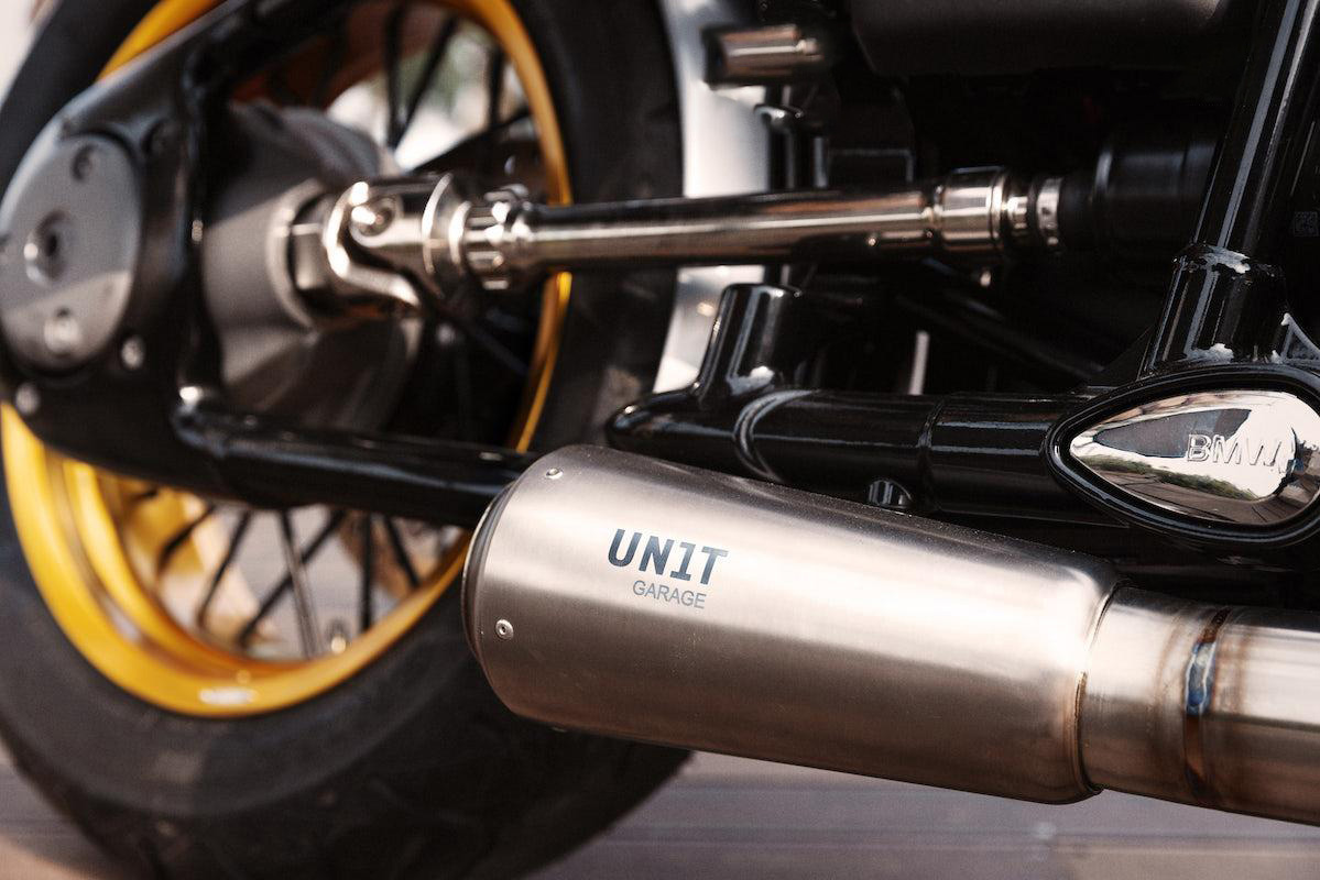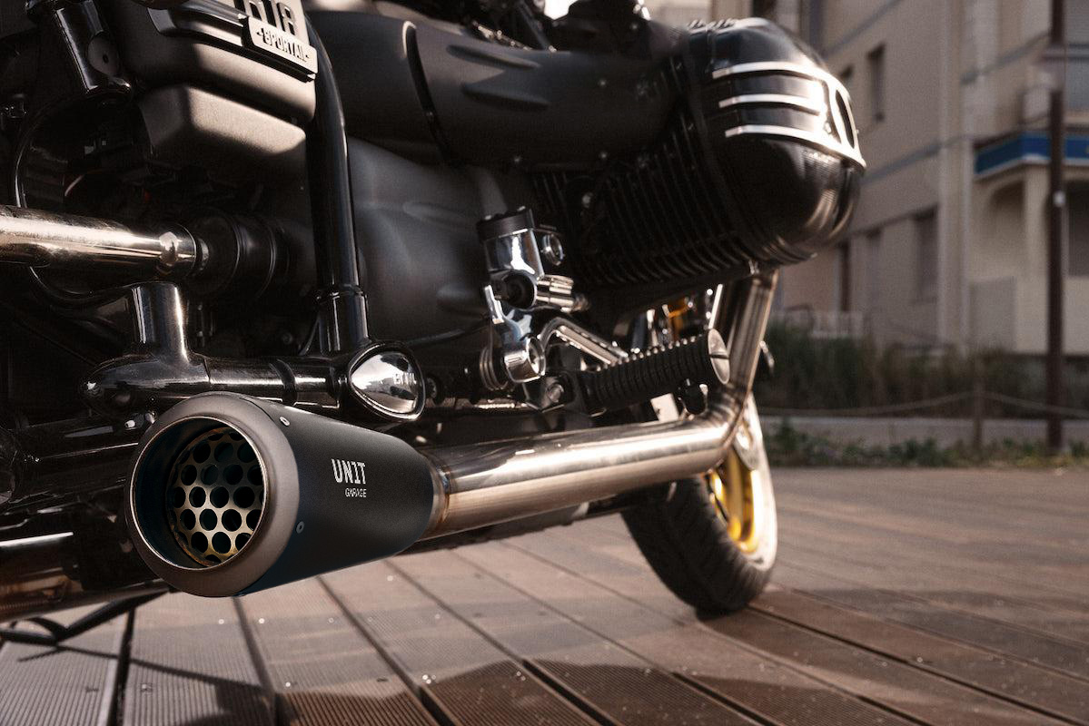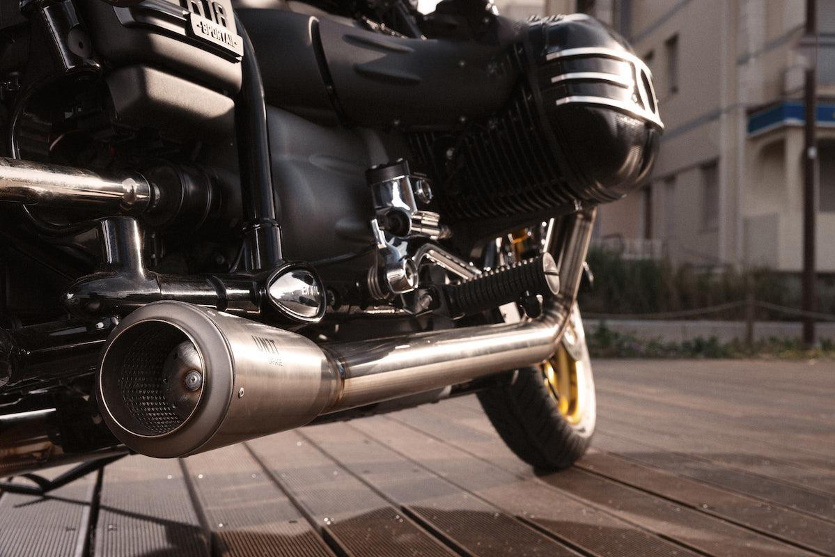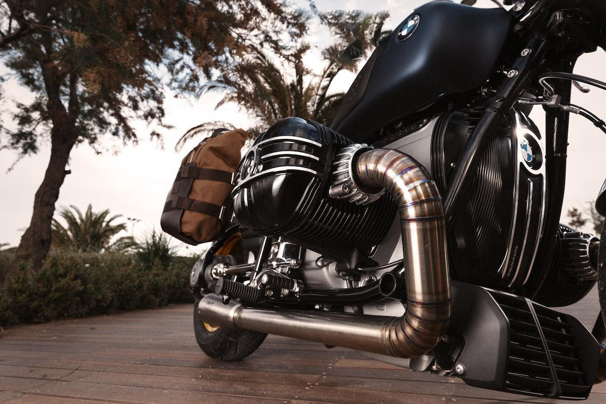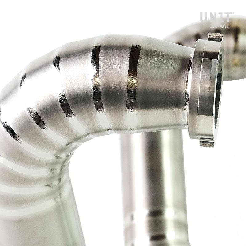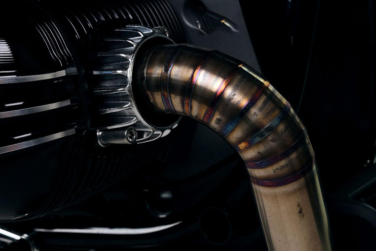 带可见焊接的完整 BMW R18 钛合金排气管