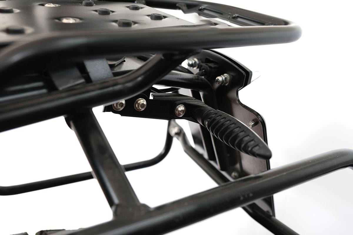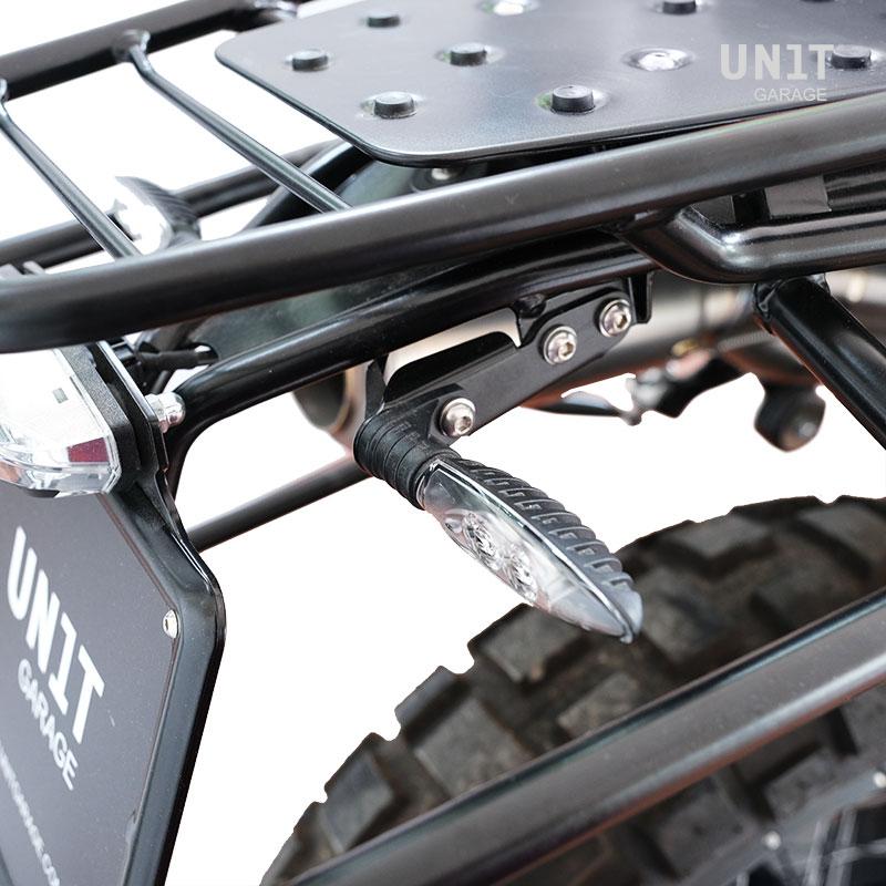 一对金属支架设计用于向后移动vs nineT的箭头。经常发生的是,安装其他配件,如袋子或售后市场排气,箭头是一个问题。只需几分钟就可以使用这些实用的配件,而无需修改已经足够长的电缆。它们安装在原始挡泥板上和我们的高牌照架上,并且60毫米的箭头被放回原位。