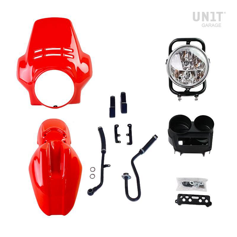 它可以轻松安装在 Riser Cod. 1504 上,并允许安装前灯外壳、高挡泥板、原装指示灯和可选屏幕。