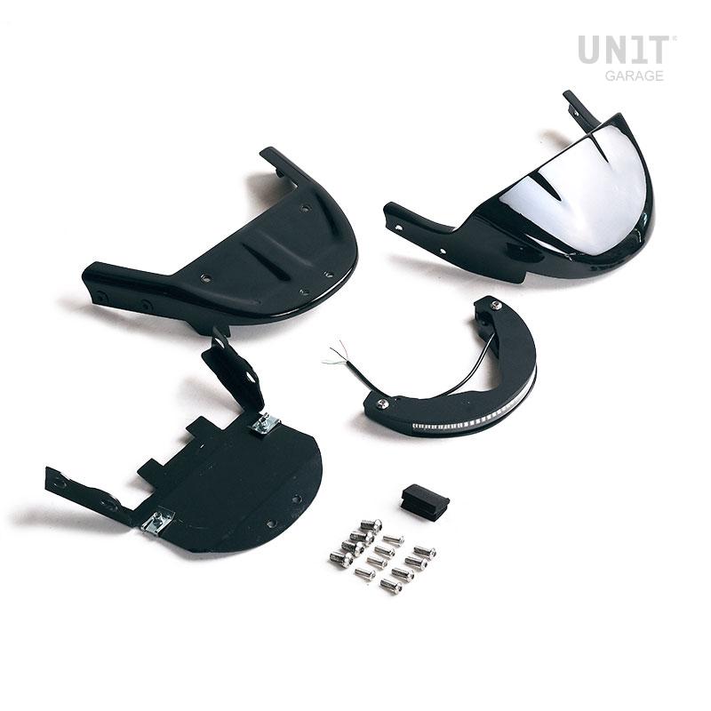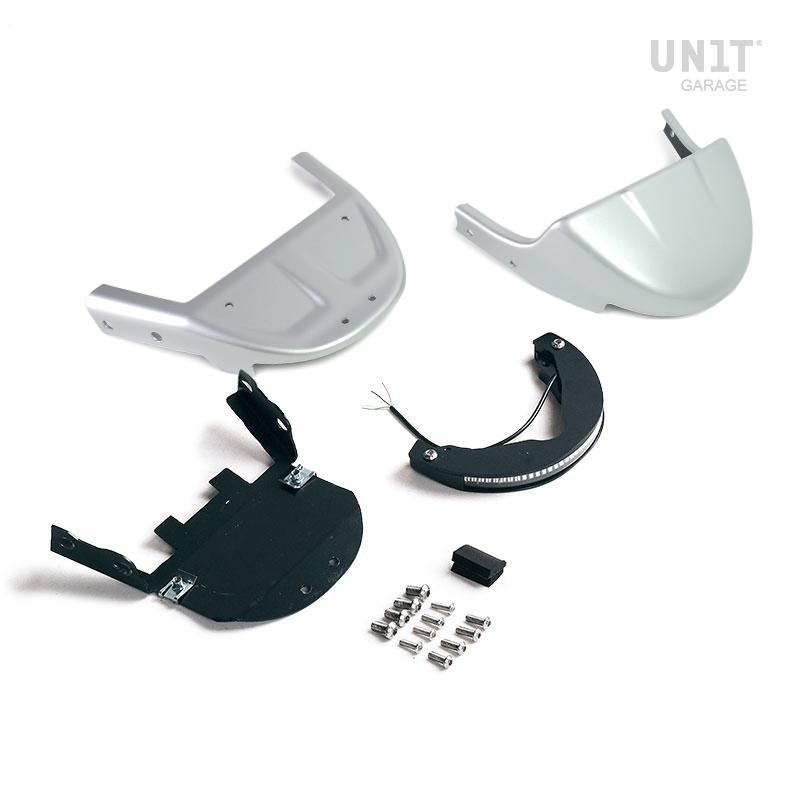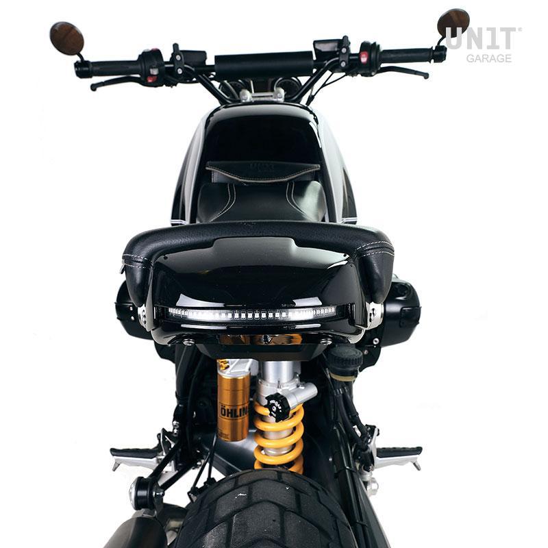 BMW在设计nineT Roadster时,将后部设计为完全可拆卸的,不仅是乘客车架,还有乘客座椅。现在您可以将您的 nineT Roarster 改造成真正的 Roadster!它反映了摩托车的线条,与我们的坦克和原来的坦克都很棒。由两个 ABS 半壳制成,内部钢结构涂有环氧粉末。它配有 CNC 铝嵌件,经过黑色阳极氧化处理,取代了指示灯和原来的车头灯。它在供货时已接线,可使用与 OEM 电气系统兼容的插头进行组装。可安装在任何年份生产的 nineT Roadster 车型上。 (EURO 3-4-5) 集成的 LED 灯条呈红色亮起,当刹车激活时,其强度会增加(制动灯),当方向指示灯激活时,其末端颜色会变为橙色(参见视频)。配有组装和说明所需的一切。提供涂漆或中性色(用摩托车的颜色涂漆!)如果与我们的配件结合安装,则完美。