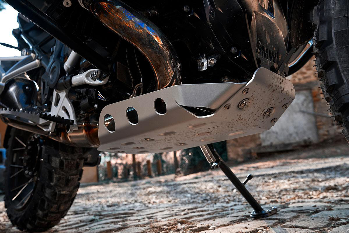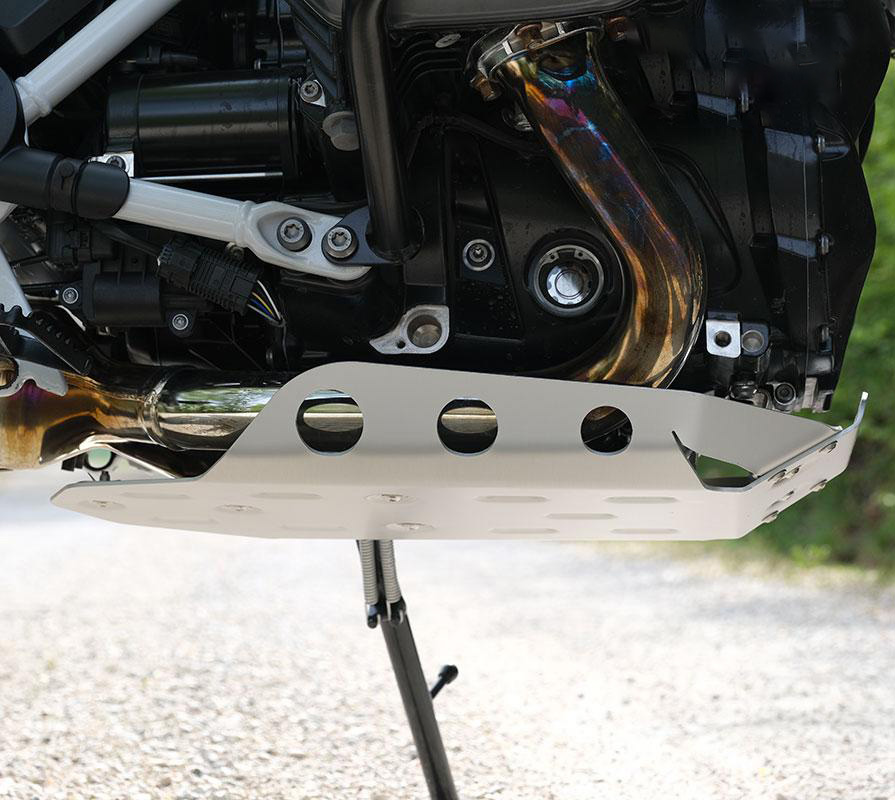 它由3毫米Peraluman轻合金制成,冷成型并带有排水孔压纹:加强它的明显肋条与简化的附件相结合,即使与中心支架最相容也是如此。发动机的后固定支架经过全面重新设计和拉伸,可吸收冲击并保护发动机。它比原始模型大,并且成形为保护催化剂的前部和最暴露区域中的排气歧管。它配有螺钉,防振和垫片,可随时组装。