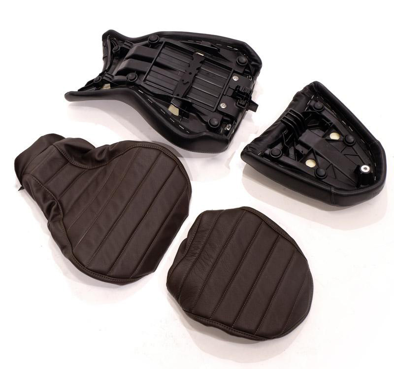 原始的座椅材料不能满足nineT的外观,因此我们将其替换为更“真实”的东西。我们选择了最好的皮革厂,并选择了意大利原产且未经五氯苯酚处理的皮革。手工制作,并用棉线缝制。借助覆盖在皮革中的额外海绵层,带有此罩的马鞍更加舒适。正确的安装需要一些手动技能,如果您不喜欢它,请与室内装饰师联系。