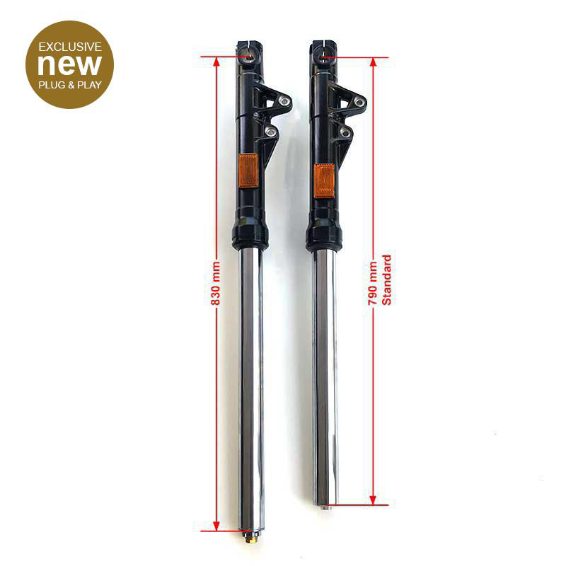这些新的叉筒安装时无需对原始叉进行任何修改,它们是即插即用且完全可逆的。 105_W08H 版本工作得很好,但需要在压制区域转动阀杆,有了这个更新版本,不再需要使用车床:您将获得与以前版本相同的出色结果,而无需篡改任何内容原装前叉将保持完全可逆!