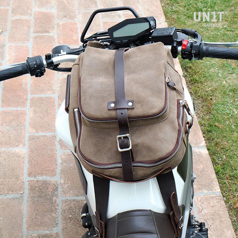它与提供的乐队相连,一旦从摩托车中取出就成为背包。
