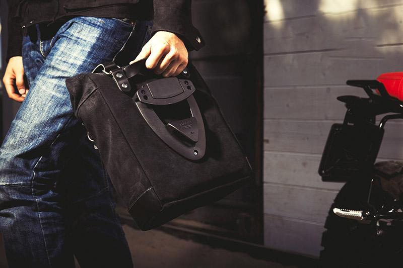 用蜡处理,使其耐水。注意3毫米皮革饰面的最小细节,简单而纯净,就像其制成的材料一样。它可以通过已经包含并安装在袋子背面的快速释放系统快速连接到我们的袋子框架,该系统配有用于锁定的锁。它可以在内部容纳一个15英寸的笔记本电脑,并配有一个用于存放电话和文件的大拉链口袋。
