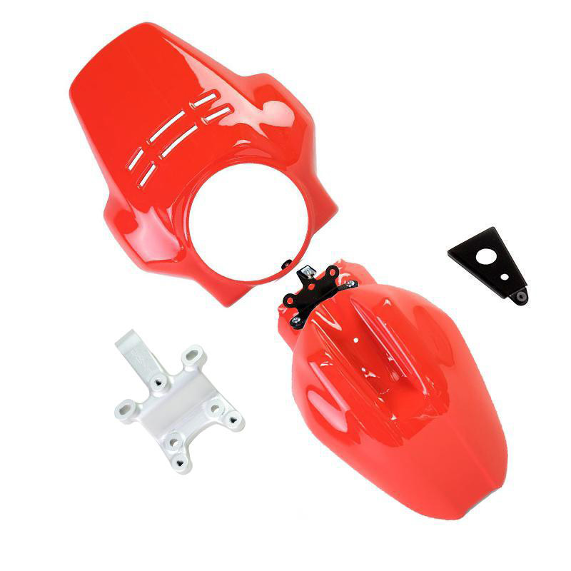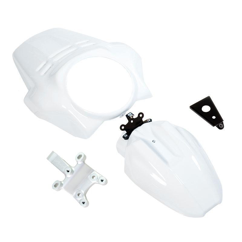 nineT Scrambler和nineT Pure的前灯位置低于nineT Urban GS。使用该套件,您可以重新审视整个前部,使其非常具有侵略性,同时具有顶部整流罩和挡泥板。恢复为SeptemberT系列改装和修改的传奇R80 GS PD的外观。带有前挡泥板和前整流罩的完整套件,以及前大灯支撑。由ABS制成,具有清漆和透明感,提供三种颜色:白光白色Urban Gs,亚光黑和红色。它们可以安装而无需对自行车进行任何修改。它们具有良好的空气动力学防护性能,并随附说明,支架和固定螺钉。